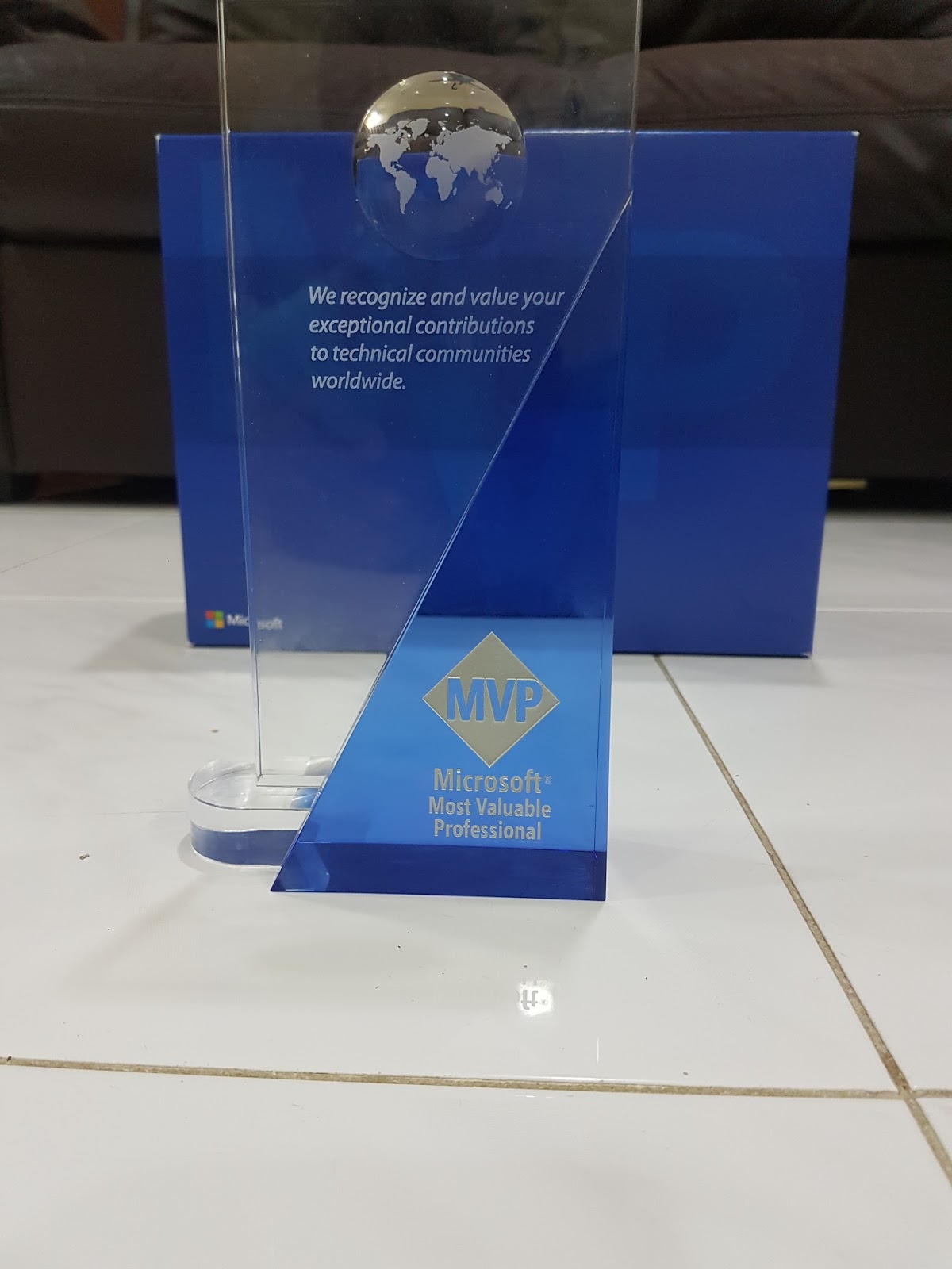 I received the award few days ago shipped from Microsoft. Sharing the pictures of the same below. Thanks to Microsoft again for giving me something I would cherish forever!!!!