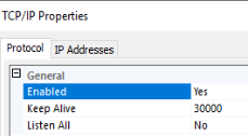 - On the server, open Sql Server Configuration Manager, expand SQL Server Network Configuration, and go to Protocols for InstanceName, click on properties of the TCP/IP protocol.