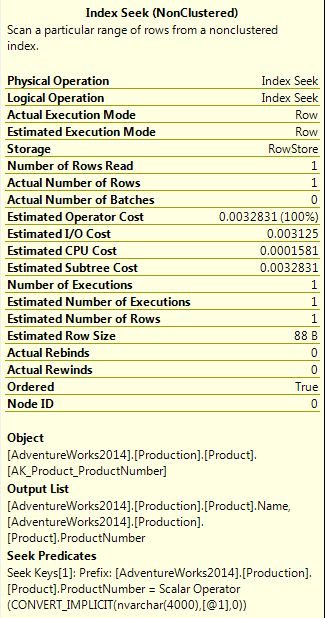 - Now if we execute the same query, an index seek is performed, we eliminated the key lookup and removed the additional I/O overhead just with including that column in the index.