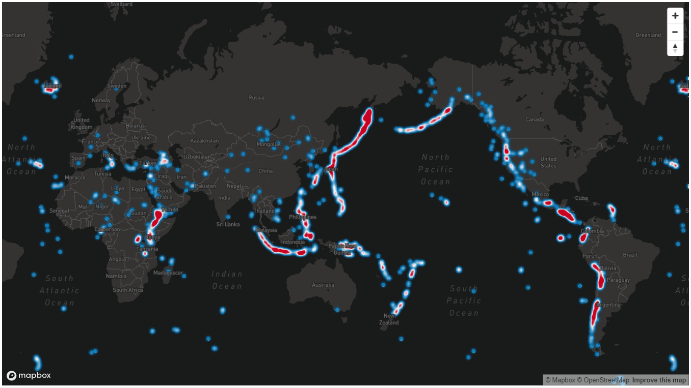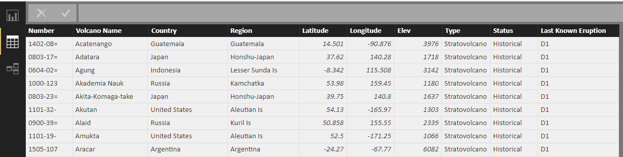 And here is the actual Power BI report with the volcanic interactive map using Mapbox (which currently is only supported in Chrome and Firefox) :