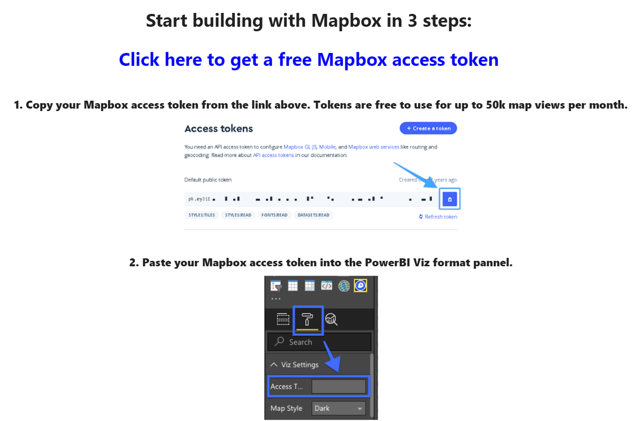 The working experience with Mapbox is similar to other custom and native map visualization, however, it has one new additional feature that would require you to register and get your personal Mapbox access token.