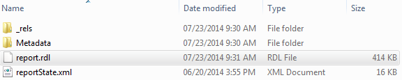 1) I've changed the file extension of my Power View .rdlx report to .zip and opened it as an archive file: