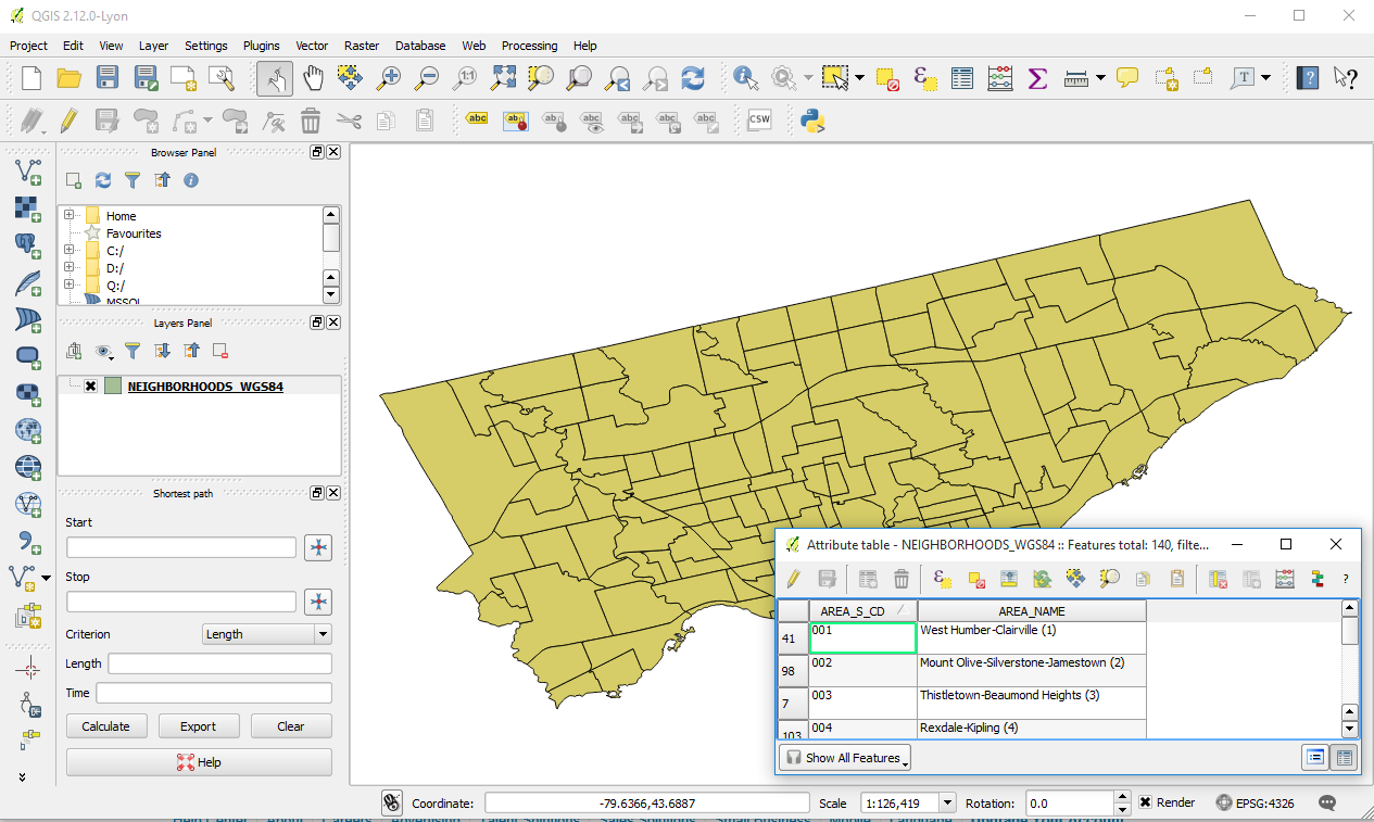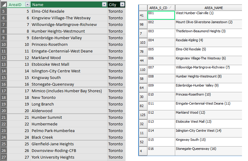 I didn’t dare to change geo file and thought it would be easier to adjust my model data set, and that change made all the difference. Now all 140 regions became visible in my PowerMap visualization! Good for Microsoft and thanks to GIS and Toronto Open Data Catlog for providing software and necessary data sets.