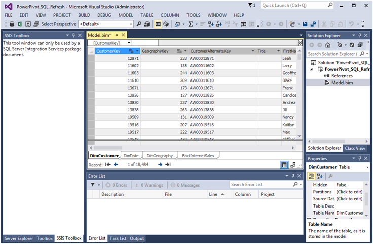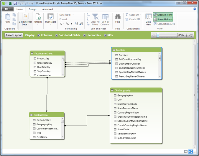 1) Import a PowerPivot data model from an Excel file into a Tabular Model solution