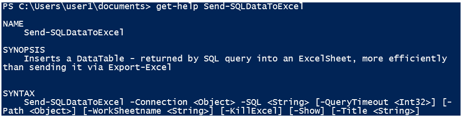 If you would like to explore all the parameters, options etc. of Send-SQLDataToExcel look at the complete help file in the powershell: