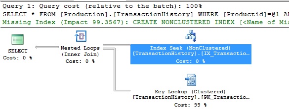 Table has a non clustered index on "ProductID" and clustered Index on "TransactionID".