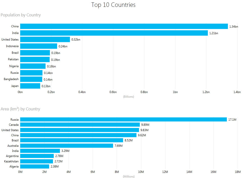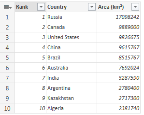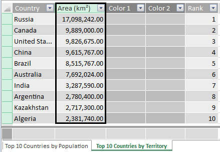 For this demo test I have pulled 2 data sets from Wikipedia using PowerQuery and pushed them further into a PowerPivot model.1) Top 10 Countries by Population (https://simple.wikipedia.org/wiki/List_of_countries_by_population)2) Top 10 Countries by Territory (https://simple.wikipedia.org/wiki/List_of_countries_by_area)