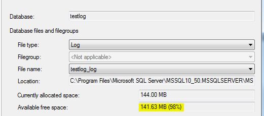 BACKUP LOG [testlog] TO DISK = N'C:\Program Files\Microsoft SQL Server\MSSQL10_50.MSSQLSERVER\MSSQL\Backup\testlog.bak' WITH NOFORMAT, NOINIT, NAME = N'testlog-Transaction Log Backup', SKIP, NOREWIND, NOUNLOAD, STATS = 10