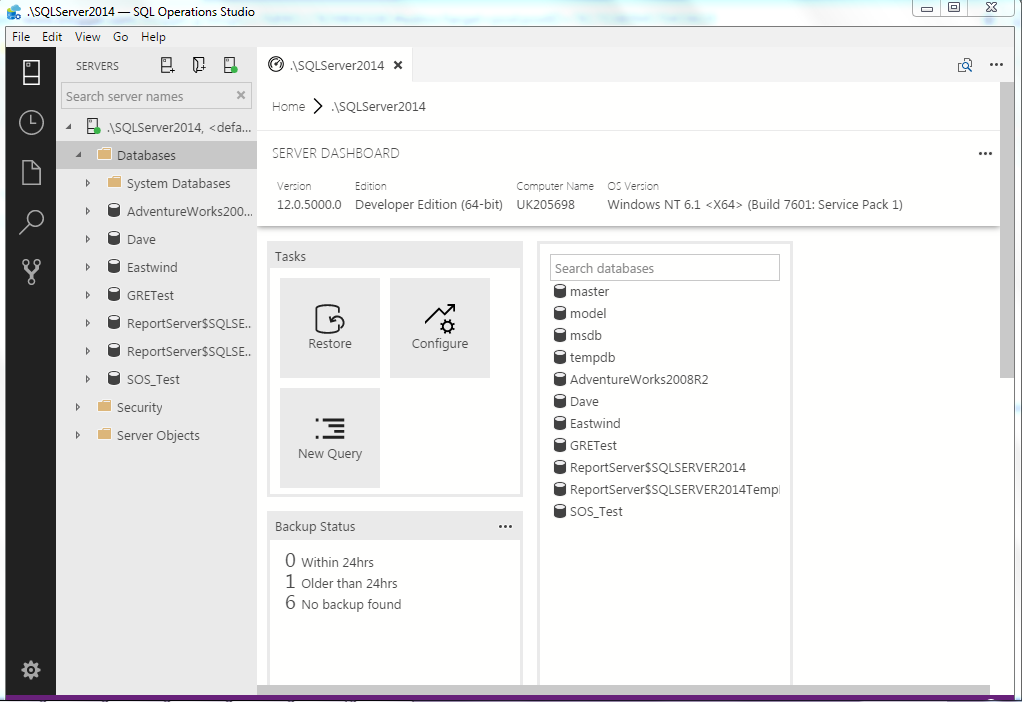 I downloaded SQL Operations Studio earlier today and from the download page I can instantly how this differs from SQL Server Management Studio. Its cross-platform! Download SQL Operations Studio