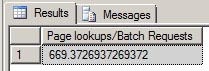 sys.dm_os_performance_counters; however, there will be a few that are calculated as a ratio. One example is the Page Lookup / Batch Request. This counter will show you the average number page lookups that occurred per batch request. Both of these individual counters are of type 272696576 which means they are "per second counters". However, for this ratio counter we don't care about the per second value, we just want total of Page Lookups divided by the total of Batch Requests.
