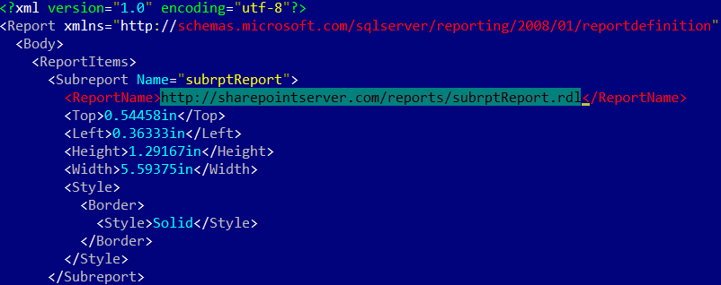 And here how this very same section may look like with the absolute path for its sub-report in a targeted deployment SharePoint environment: