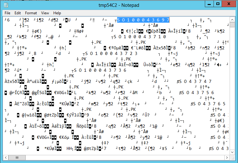 When I open one of the smaller temp files in notepad, the query results from my my query re-run so it is a much smaller result set. This is what I see.