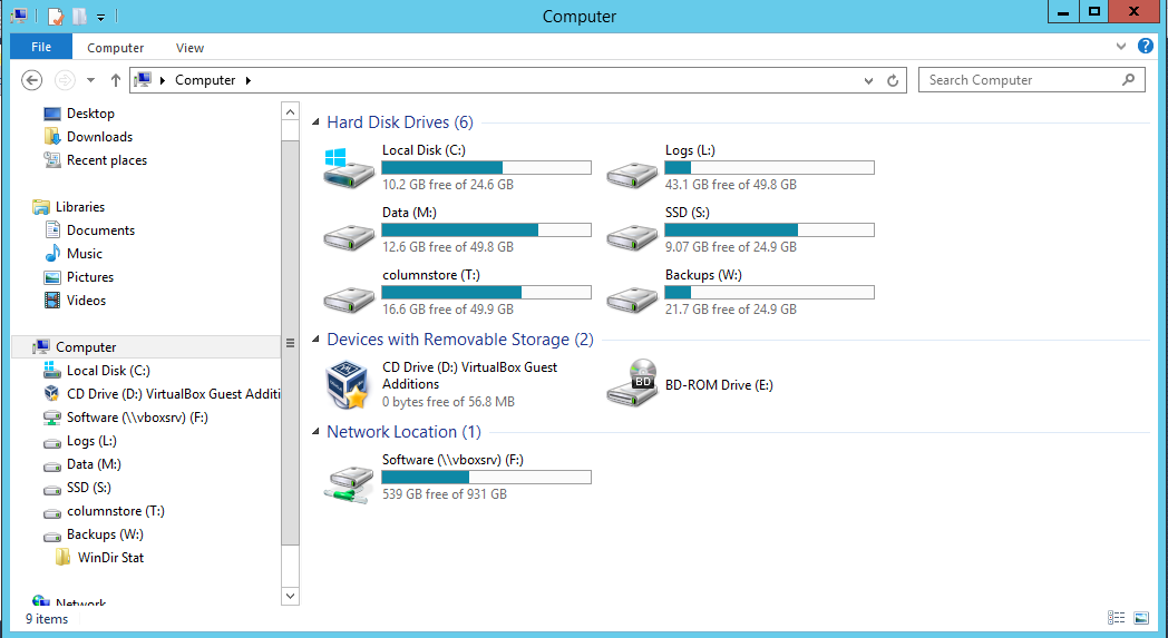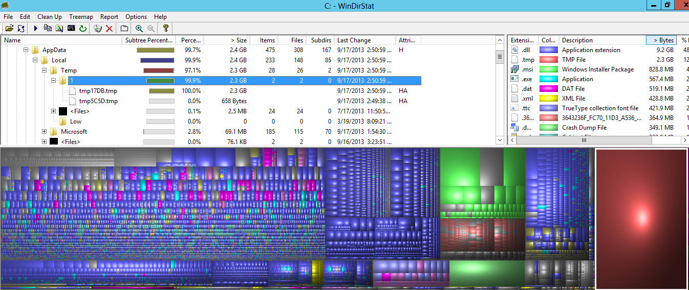 WinDirStatto confirm the results. During my SQL Saturday presentation my VM unexpectedly ran out of space on the C drive. This was a little confusing as I had specifically set up my SQL instance to not be installed on the C drive.
