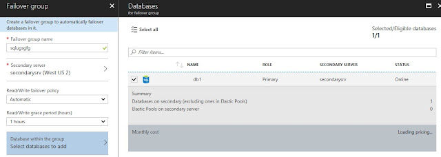 Β Β Β Β Β * Pick the existing database "db1" to be added to the failover group