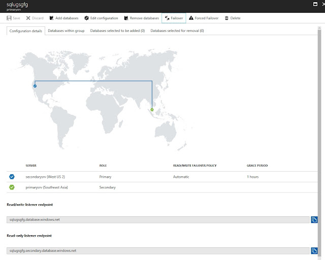 * Configure Primary Server, Secondary Server and Geo Replication as explained inΒ http://strictlysql.blogspot.sg/2017/05/sql-azure-databases-active-secondary.html