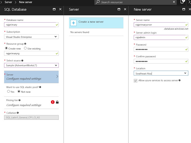 9) Create a secondary server similar to primary, by providing details like servername and admin login name