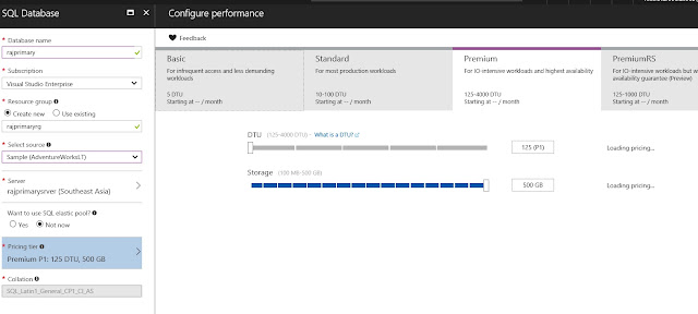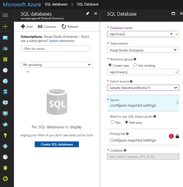 1) Login to portal.azure.com and Click on SQL Databases -> Click on Create SQL Database