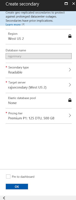 That's a lengthy first post on SQL Azure - Active Secondary. On subsequent posts, I will cover how to connect to primary and secondary, failover , monitoring and how applications can benefit via readable secondary and of course the cost involved as well.