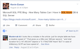 Hello Dear Reader!  I had recently written a blog for the PFE blog, "How Many Tables Can I Have In SQL Azure DB & SQL Server".   It was a fun blog that I had written during a very long layover when traveling home.  It covers the maximum number of objects that you can create in SQL Server.