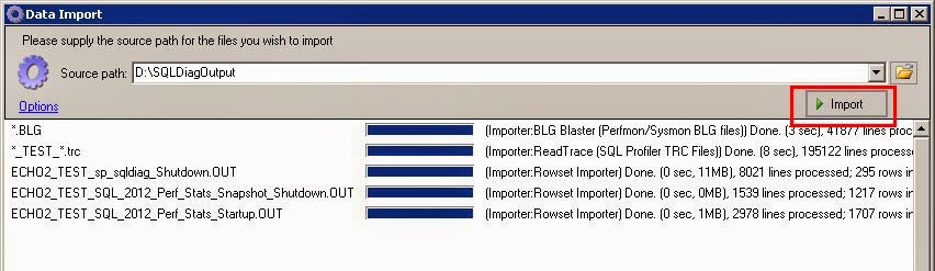 At this point, you will need to do one of two things: overwrite the existing data or create another sqlnexus database. To overwrite the existing database, click the Import link and then click Options. In the dropdown menu, just select “Drop Current DB Before Importing”. This will drop and recreate the sqlnexus database.