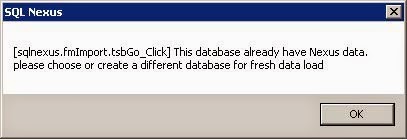When you import data into SQL Nexus, it populates the tables in the sqlnexus database. If you already have data in the sqlnexus database, you’ll get the following error when attempting to import new data.