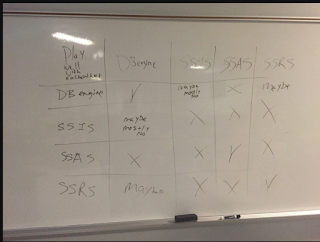 We've taken a break for lunch!  The class exercises so far have been a lot of fun.  We've got a smart crew here today.  So far we've covered the different versions of SQL Server, how features and licensing go together, and using SSMS to create basic options and monitor.