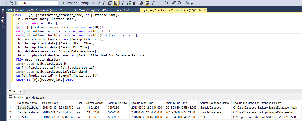 Sometime we need to find out the history of database restoration to get the answers of following questions: -