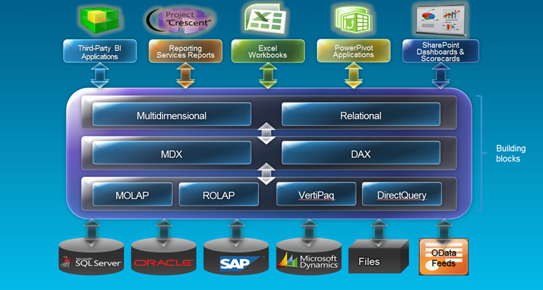 - Data Model: The conceptual data model supporting both multidimensional and tabular data (an enhancement of the current PowerPivot data model experience will allow building of the tabular data model)