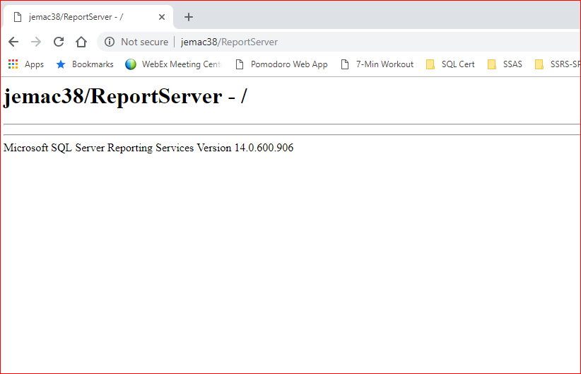 Select Web Service URL from the panel. Review the default. You may or may not want to change the default. I’d keep it as is. Click Apply at the bottom. Open your internet browser and test the service. The URL is provided under Report Server Web Service URLs. You should get something like the screenshot below.