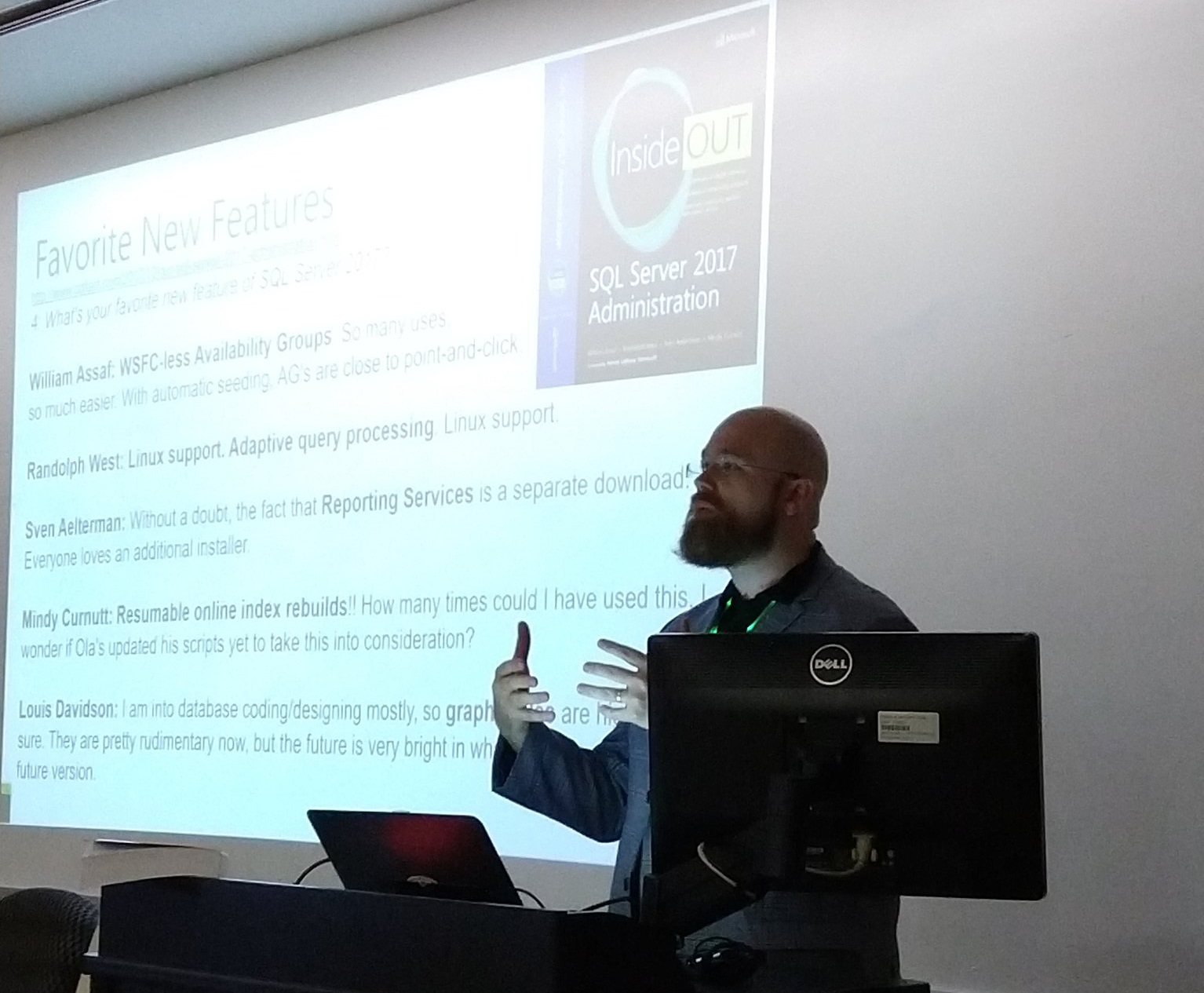 Thanks for joining me for a full room and a boatload of quick-delivered SQL 2017 information in the second timeslot today at SQLSaturday Houston 2018! Lots of great questions, especially about adoption of SQL Server 2017.
