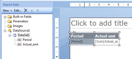 1. Create your first DataSet DataSet1 from cube A with Period at Rows and Actual amt measure, and Tablix Tablix1 with Period as Row Group and Actual amt as a total. Add sorting by Period