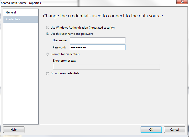 Looking over all my data sources I noticed that any of them that use “SQL Authentication” had the user blanked out. Any reports that had used Windows credentials worked, of course, first 5 in my project were all SQL Authentication, just my luck. So instead of actually deleting and re-adding all 30 shared data sources in my project, I was able to go through and just re-input the SQL user names and passwords.