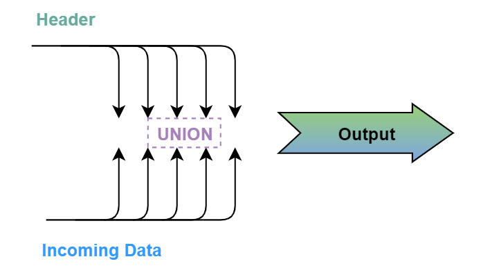 Just an idea that we can physically segregate header metadata with column names and data types in a separate static file and then always attach it to various dynamic incoming data sets with the UNION data transformation, had simplified my process to create the output file that I needed.