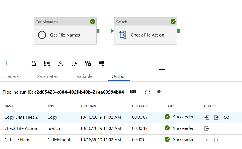 However the new logical control flow for my ADF pipeline may look a bit simpler with only "Get Metadata" and "Switch" activities: