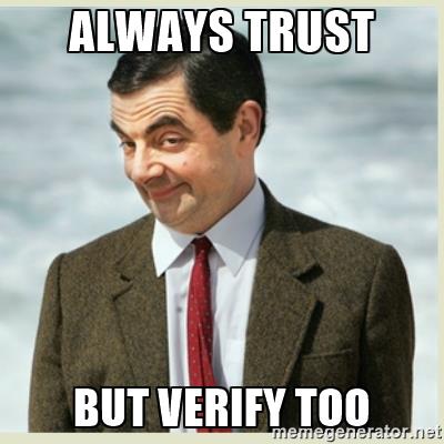 Yes I am old enough (Full Disclosure) to know many people associate the phrase "Trust But Verify" with a certain Republican President of the United States, but it really is an important part of what we do as DBA's.