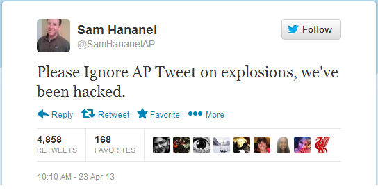 At 1:07 pm, East Coast Time, the Associated Press Twitter account, currently suspended, was hacked. The 80 characters contained within the Tweet typed by the hackers seemed particularly potent given the turmoil of the last week. “Breaking: Two Explosions in the White House and Barak Obama is injured”. I’m not alone in my conversion, apparently the people trading on the New York Stock Market follow the Twitter as well.