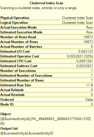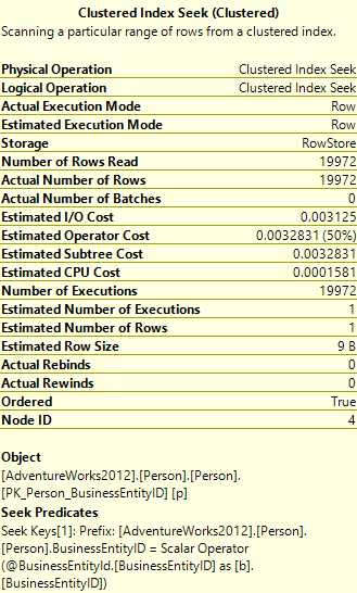 Let’s look at the Tool Tip for the Clustered Index Seek:
