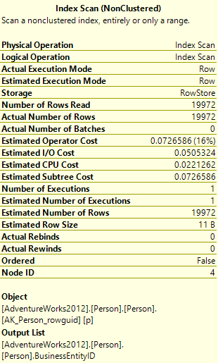 Now to look at the bottom operator, the index scan on the Person table: