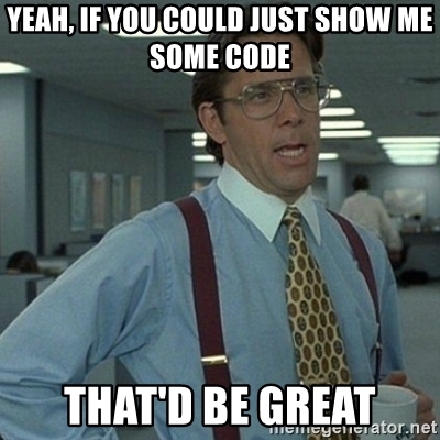 | https://memegenerator.net/instance/53270254/yeah-thatd-be-great-yeah-if-you-could-just-show-me-some-code-thatd-be-great |