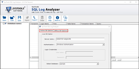 - Offline Mode : This option is for loading transactions from the LDF and corresponding MDF file, which is manually browsed by a user.