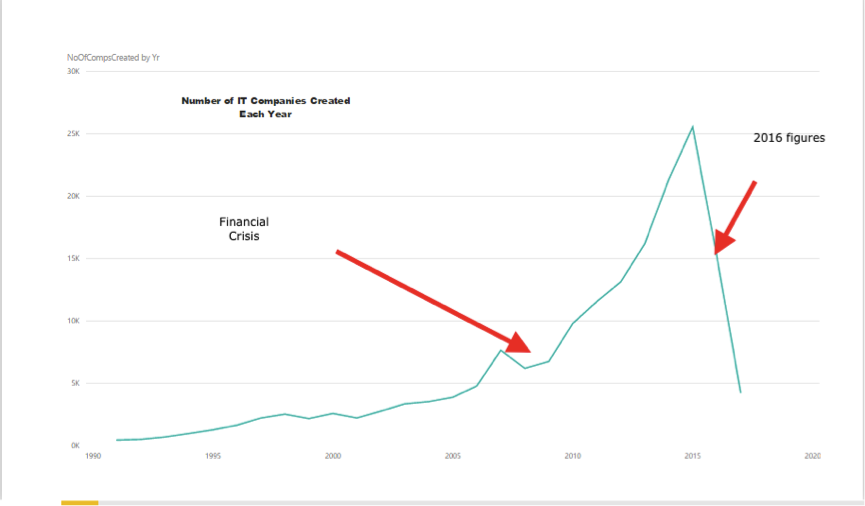 How does the budget policy and other poltical decisions impact on you can see, 2016 saw a dramatic drop in the number of IT companies created. You can see a snippet of the queries results below: