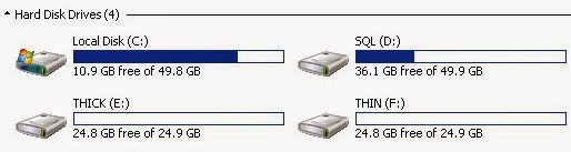 Thin provisioning is a great concept for using only what you need, and not allowing you waste valuable storage. However, this can have a detrimental effect on database performance. Thin provisioned disk will auto grow the VMDK file as the VM needs more space on that disk. When VMware needs to grow the VMDK file, it will cause a delay in the VM's disk access while it's growing. Let's take a look at a few examples.