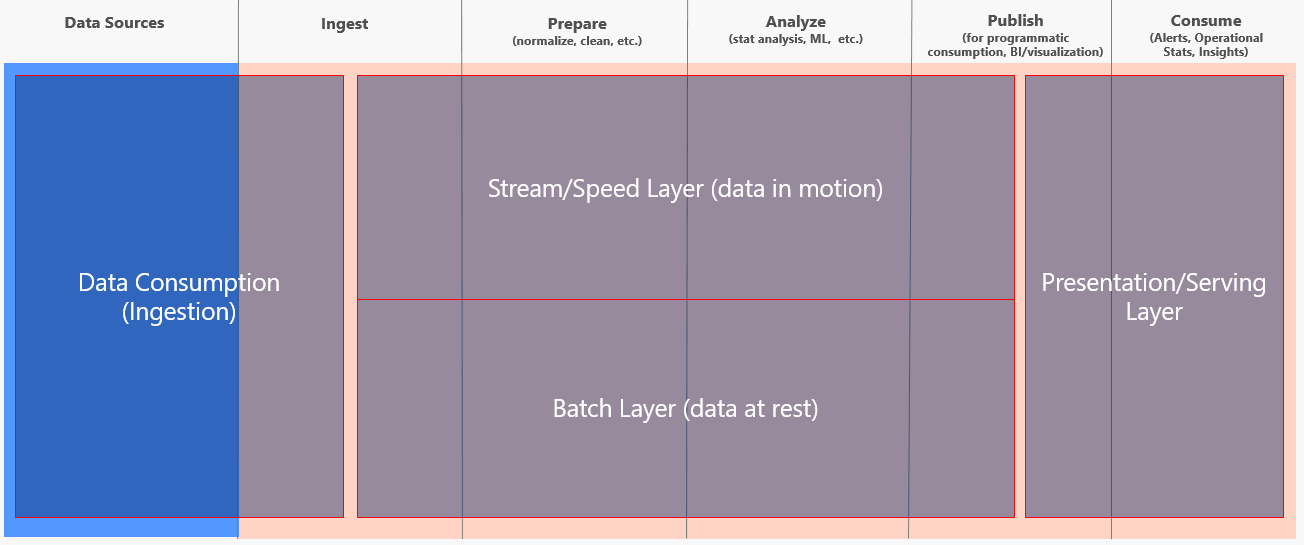 Data Consumption: This is where you will import the data from all the various source systems, some of which may be streaming the data. Others may only provide data once a day.