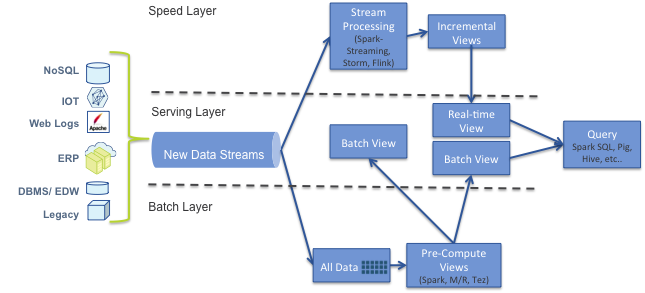 Be aware this is a complicated architecture. It will need a number of hardware resources and difference code bases for each layer, with each possibly using different technologies/tools. The complexity of the code can be 3-4 times a traditional data warehouse architecture. So you will have to weigh the costs versus the benefit of being able to use data slightly newer than a standard data warehouse solution.