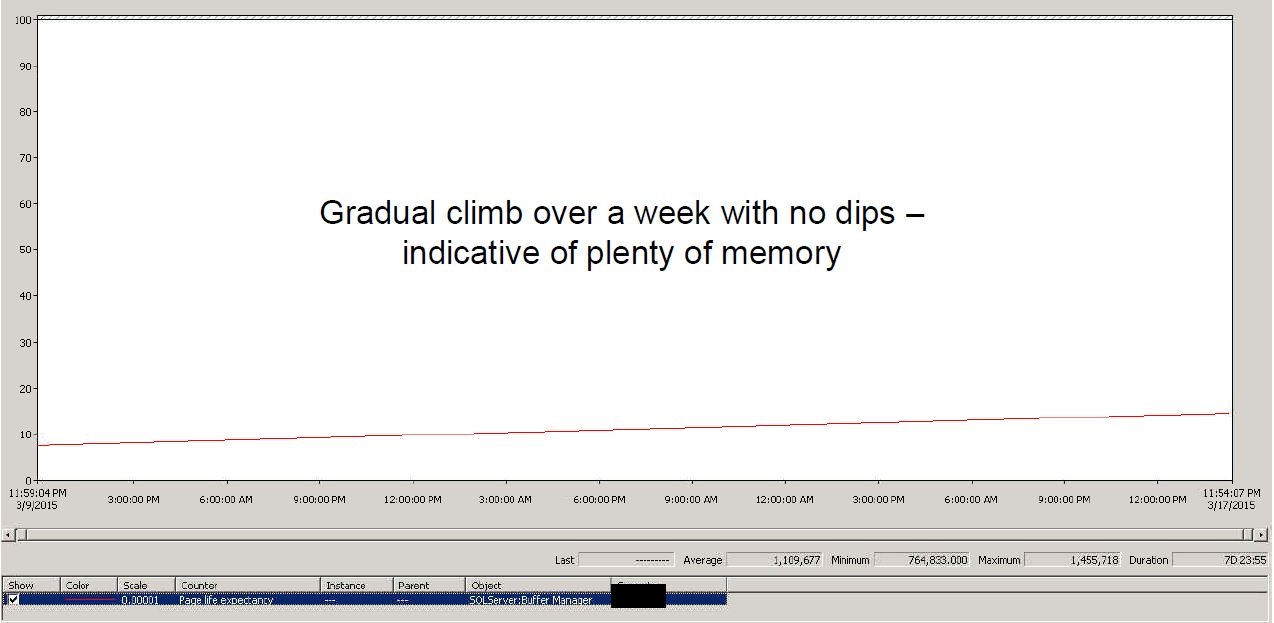 They find that the PLE is some relatively small number and freak out, or worse, they find it is a large number and think "my SQL Server doesn't need this much RAM, I can cut back."