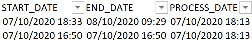 SELECT PROCESS_DATE, START_DATE, END_DATE