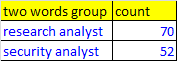 I have to highest two word in the columns. It should have the maximum two words combination. I have attached the excel for reference.