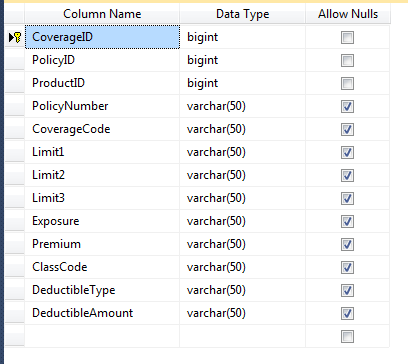 FETCH NEXT FROM POLICY_COVG_CURSOR INTO @CoverageCode, @Exposure, @DeductibleType, @DeductibleAmount, @Limit1, @Limit2, @Limit3, @Premium