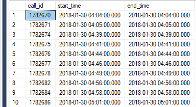 The table has a call_id, start_time, and end_time. The table has thousands or records but I am parsing by day. When I include the ]group = 'Tech' it drops the working collection to about 800.