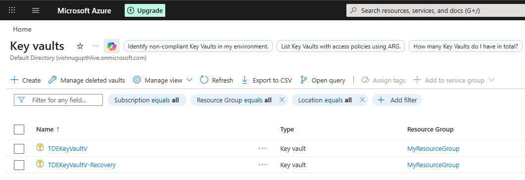 Please note that in Stairway Step 3, the Key Vault was originally named TDEKeyVault. However, due to recreation constraints encountered in my Azure account, a new Key Vault named TDEKeyVaultV has been used instead for this demonstration. The configuration and steps remain the same; only the vault name differs for demonstration purposes. These prerequisites ensure that we are building on a fully functional EKM + TDE configuration before simulating the disaster recovery scenario.